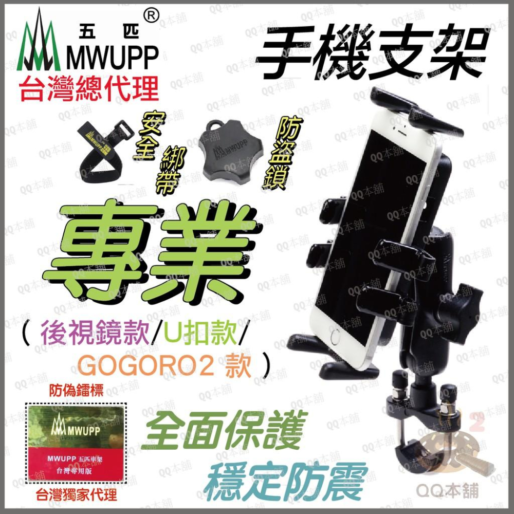 ~MWUPP和OSOPRO 皆為五匹註冊商標,五匹擁有多個不同的商標,有圖型、漢字、英文 ~本賣場販售商品為五匹原廠台灣總代理貨 請認明五匹官方商品 現貨 買就送 《 2021年 新款 專用防盜鎖套件 + 遮陽套件 (雨傘+安裝架) 》(以上送完為止) 如贈品想換成手機充電線 也可於備註留言 或 聊聊 如需要更換成短板中段 可以備註一下 適用 長 不限, 寬 5.5cm ~ 8.8cm 手機