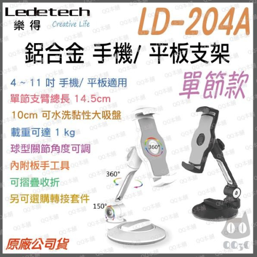 《 台灣出貨 吸盤式 單節 》樂得 Ledetech LD-204A 鋁合金 吸盤 手機架 平板架