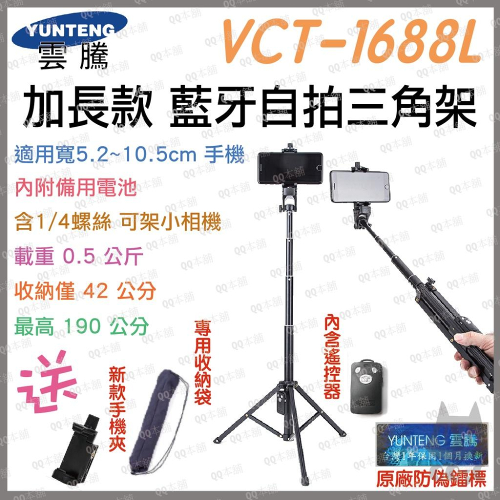 《 免運 現貨 自拍架 長版 更穩 》YUNTENG 雲騰 VCT- 1688L 藍牙自拍桿 自拍 三腳架 手機腳架