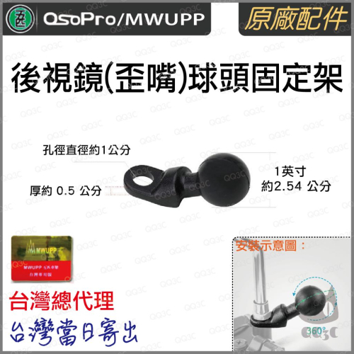 《 五匹 MWUPP osopro 專用配件 球頭 》後視鏡 歪嘴 球頭固定架