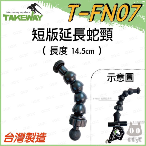 TAKEWAY專用蛇頸延長桿 能延長使用距離, 方便調整角度, 操作簡單不受限, 球體則為工業級精密塑膠,無毒耐用緊密度高。 功能 1/4”通用螺絲尺寸, 適用各式運動攝影機, 如gopro或insta360 蛇頸延長桿能延長距離, 增加更多角度的調整, 工業級精密塑膠, 球體緊固性更高 能延長使用距離, 方便調整角度, 並因應各種使用需求及環境條件 操作簡單不受限, 更能使用自如   產品規格 型號: T-FN07 尺寸: 約14.5cm (長度) 材質: 鋁合金、塑膠 備註: 四顆球體