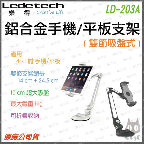 樂得 Ledetech LD-203A 金屬材質 吸盤式 手機 平板 支架 想找 #Ledetech #樂得 相關產品可點選此處逛逛喔 ---------> #QQ本舖Ledetech專區 與LD-205A款差在 多一個關節