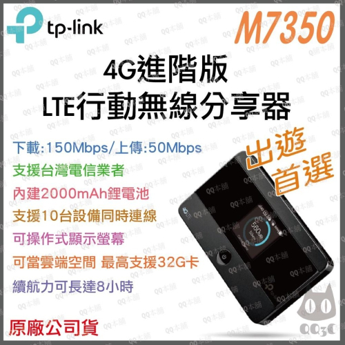 《 tp-link 原廠 公司貨 攜帶式 》M7350 4G 進階版 LTE 行動 WiFi 無線分享器