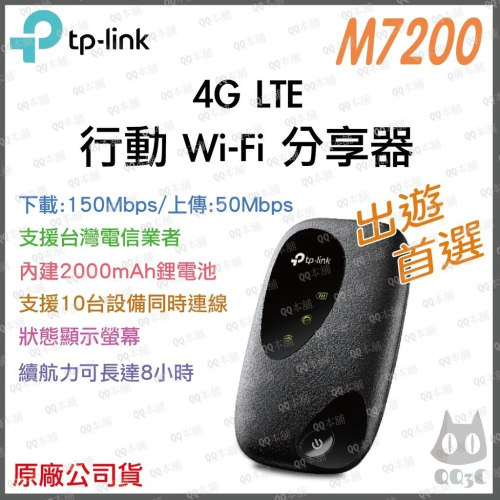 《 tp-link 原廠 公司貨 攜帶式 》M7200 4G 進階版 LTE 行動 WiFi 無線分享器