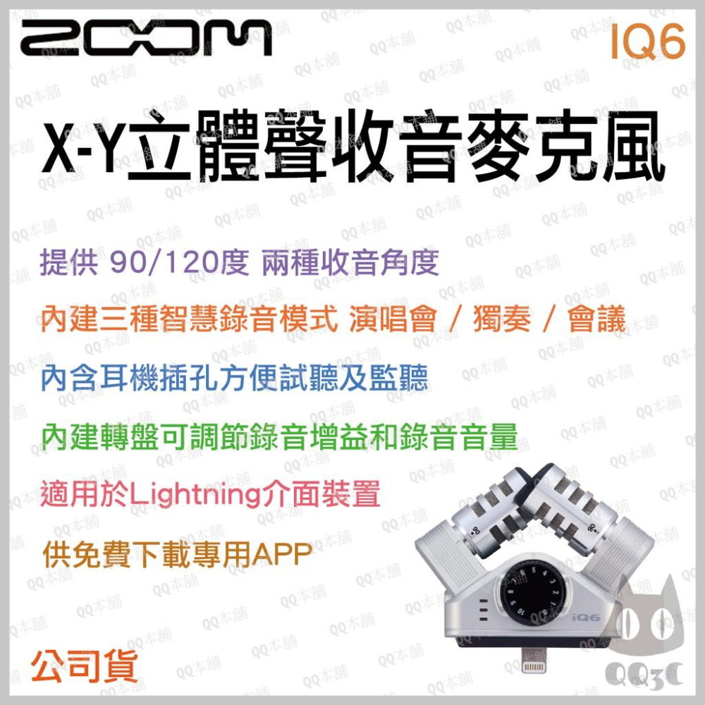 《 免運 原廠 公司貨 》ZOOM iQ6 專業級 X-Y 立體聲麥克風 隨插即錄 即時監聽 適用 lighting