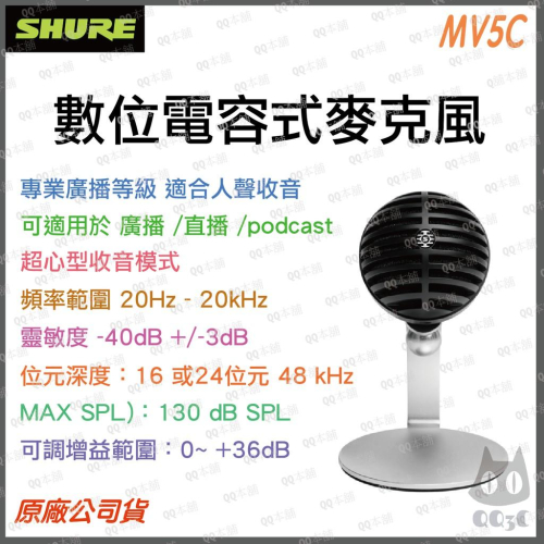 《 免運 現貨 台灣出貨 公司貨 開發票 》Shure 舒爾 MV5C 專業級 數位 電容式 直播 麥克風