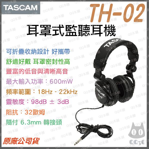 《 原廠 台灣出貨 公司貨 開發票 》TASCAM 達斯冠 TH-02 耳罩式 監聽耳機 耳機