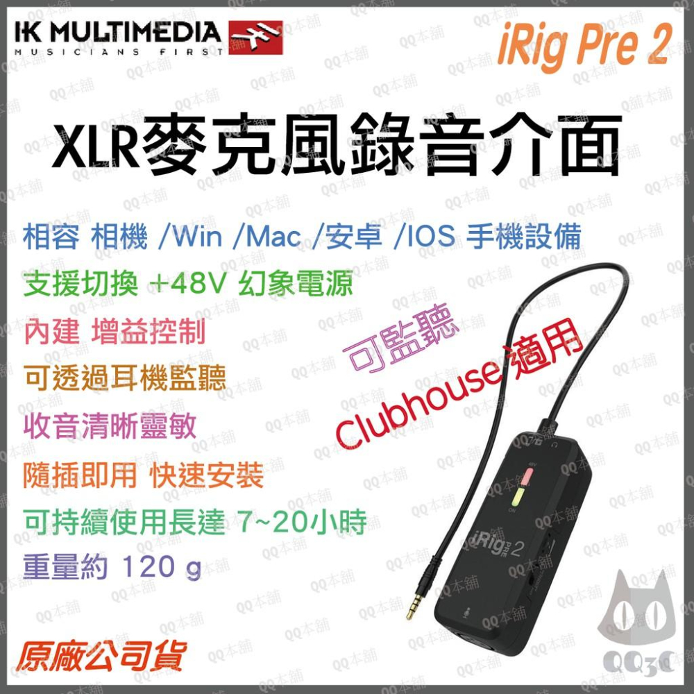 《 台灣出貨 公司貨 開發票 》IK MULTIMEDIA iRig Pre 2 行動 XLR 麥克風 錄音 轉接 介面