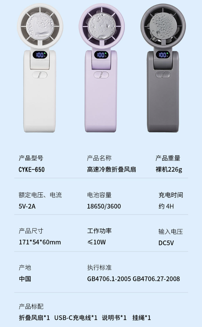 《 CYKE 台灣出貨 原廠 》650 半導體製冷 手持 折疊 充電 制冷風扇 電風扇 涼扇 渦輪扇