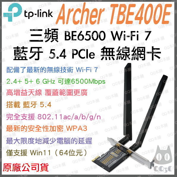 《 tp-link 免運 公司貨 》Archer TBE400E BE6500三頻 WiFi 7 PCI-E 無線網卡