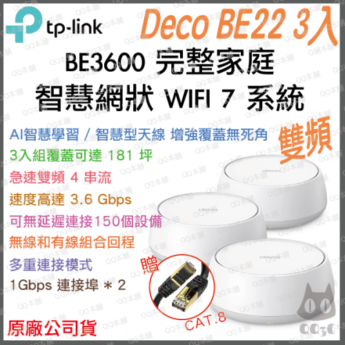《 tp-link 免運 3入 》Deco BE22 BE3600 雙頻 Mesh WiFi 7 網狀 路由器 分享器