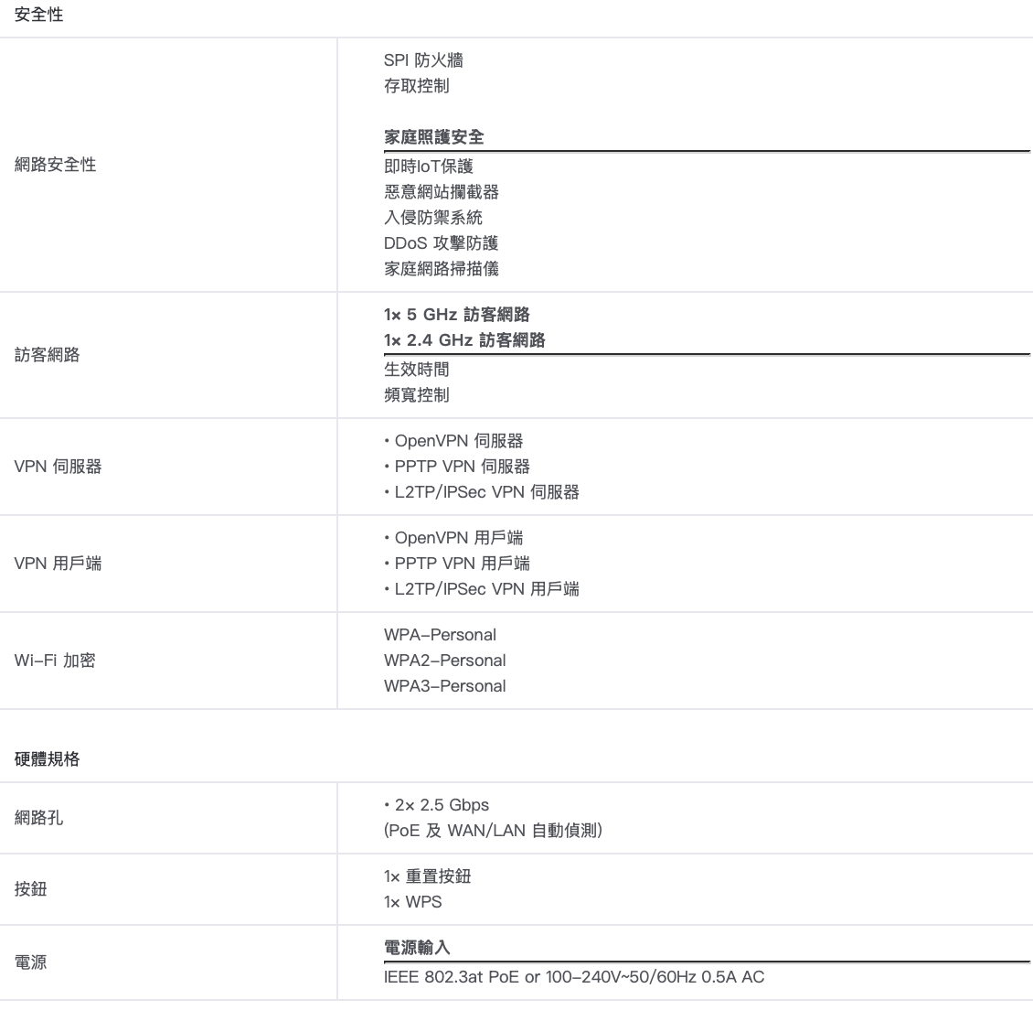2.5 Gbps 有線連接 – 2× 2.5 Gbps 連接埠可確保最大的彈性和更高的吞吐量。§