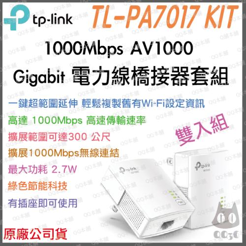 《 tp-link 原廠 公司貨 》TL-PA7017 KIT AV1000 Gigabit 電力線 橋接器 套組