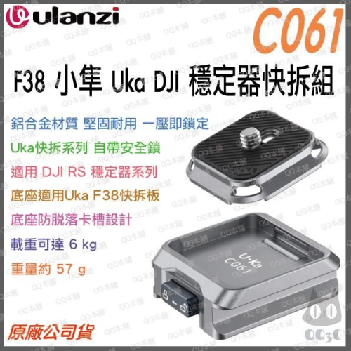 《 Ulanzi 優籃子 F38 小隼 Uka系列 》C061 DJI 穩定器快拆組 DJI RS 相容 跨系統