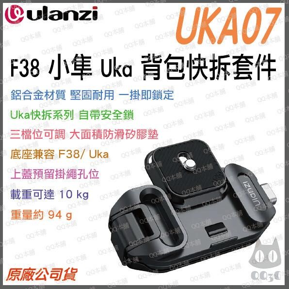《 Ulanzi 優籃子 F38 小隼 Uka系列 》UKA07 全金屬 背包快拆套件 快拆支架