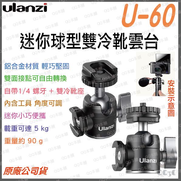 《 Ulanzi 優籃子 台灣出貨 》U-60 迷你球型冷靴雲台 雙冷靴配件擴充 360°球頭 自由旋轉 承重10kg