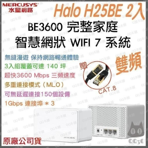 《 水星 MERCUSYS 2入》Halo H25BE BE3600 雙頻 Mesh WiFi 7 網狀 路由器 分享器