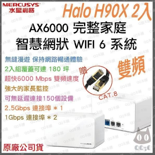 《 水星 MERCUSYS 2入 》Halo H90X AX6000 雙頻 Mesh WiFi 6 網狀 路由器 分享器