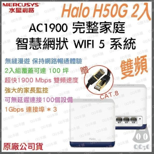 《 水星 MERCUSYS 2入 》Halo H50G AC1900 雙頻 Mesh WiFi 5 網狀 路由器 分享器