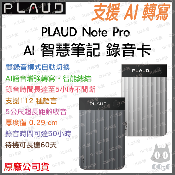 《 免運 熱銷 含皮套 原廠貨 密錄器 》Plaud Note Pro AI 智慧錄音卡 錄音筆 智能轉寫