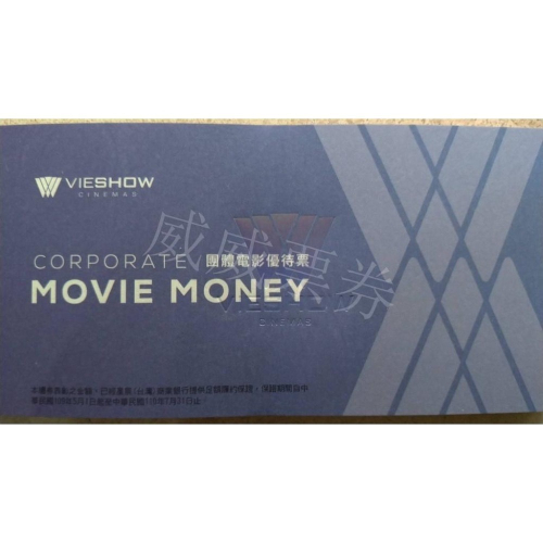 本券於MUVIE CINEMAS、台北信義、台北京站、板橋大遠百、中和環球或新竹巨城威秀影城售出