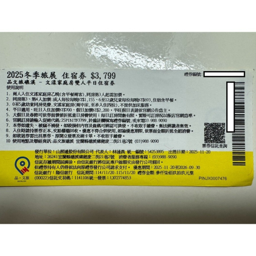品文旅礁溪 文漾家庭房 雙人 平日住宿券