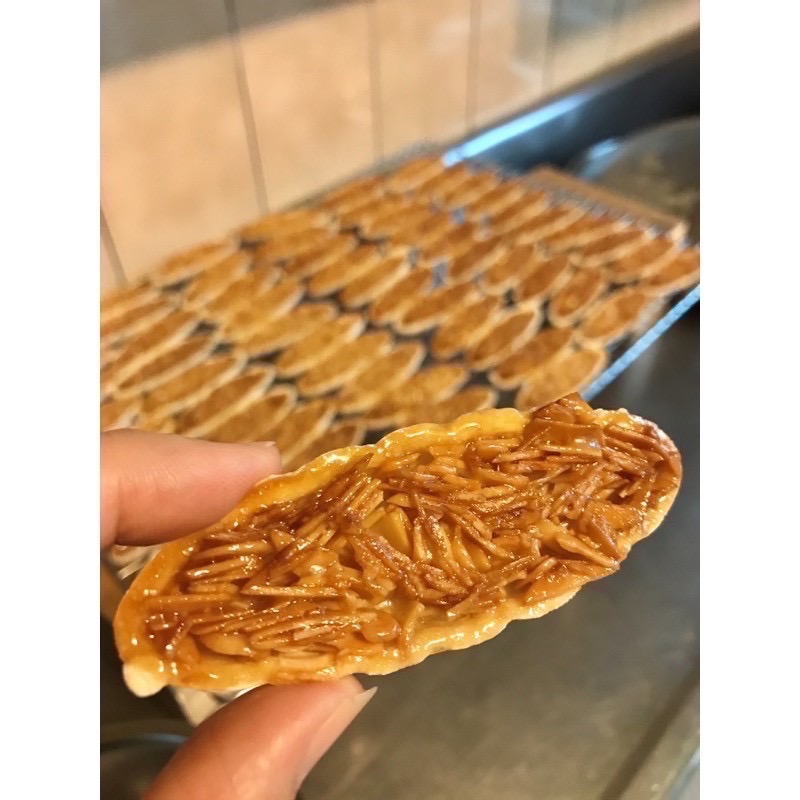 成分:美國藍鑽杏仁片、無塩奶油、蜂蜜、糯米殻、自製蜜橙皮、糖、塩