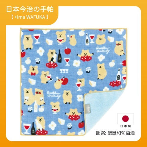 【+ima】日本今治純棉手帕 24X24cm (袋鼠和葡萄酒)