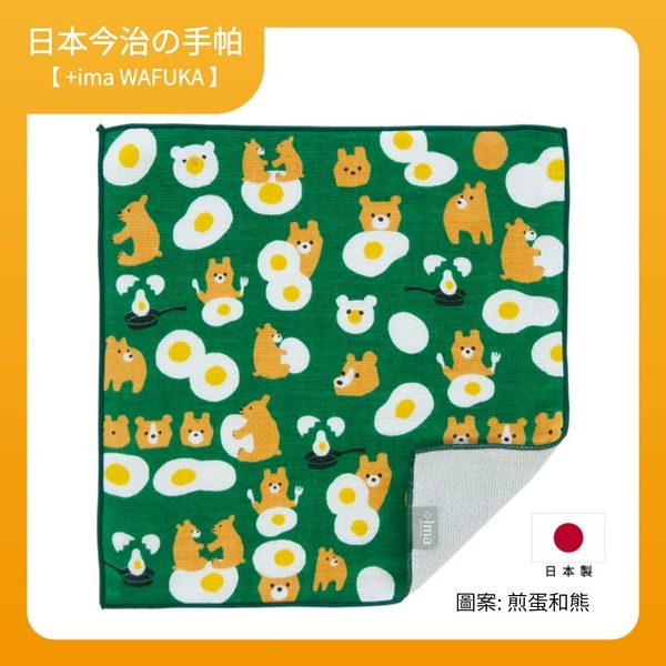 【+ima】日本今治純棉手帕 24X24cm (煎蛋與熊)