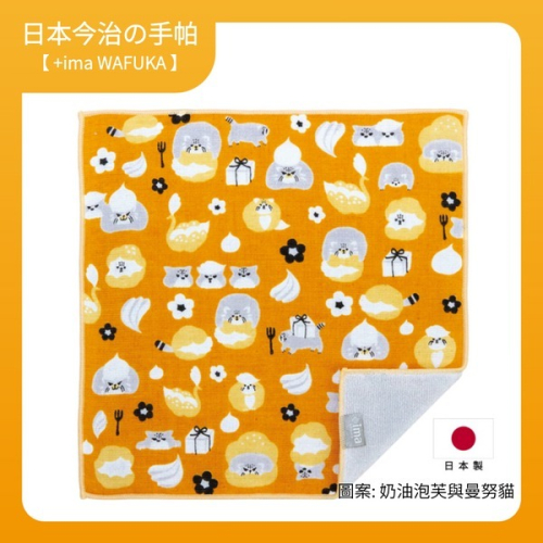 【+ima】日本今治純棉手帕 24X24cm (奶油泡芙與曼努貓)