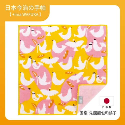 【+ima】日本今治純棉手帕 24X24cm (法國麵包和鴿子)