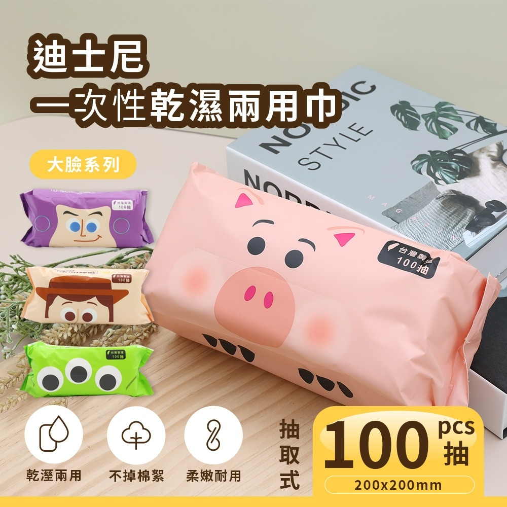 ☆現貨☆迪士尼玩具總動員系列趣味大頭乾濕兩用洗臉巾100抽