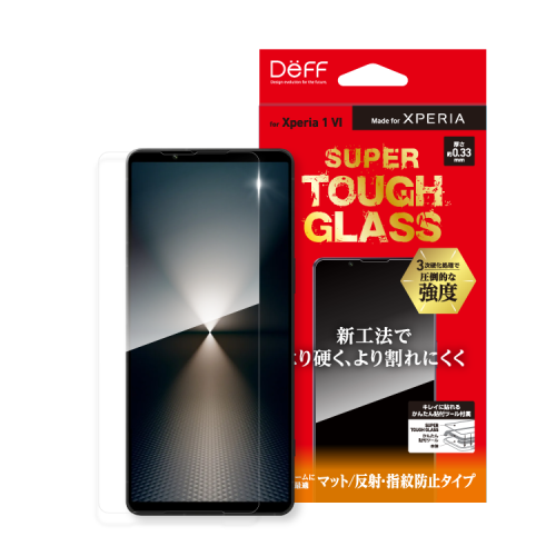 由日本Deff 針對 Xperia 1 VII、1 VI 開發製作,原料採日本AGC公司所製作Dragontrail X 高品質玻璃保護貼, 具有重量輕,高抗衝擊,耐刮。隨盒提供[貼膜神器] 輕鬆完成零失敗。TOUGH GLASS 電競抗指紋 霧面螢幕玻璃保護貼,提供優異抗指紋能力,強度約一般玻璃保護貼6倍,厚度約0.33mm。