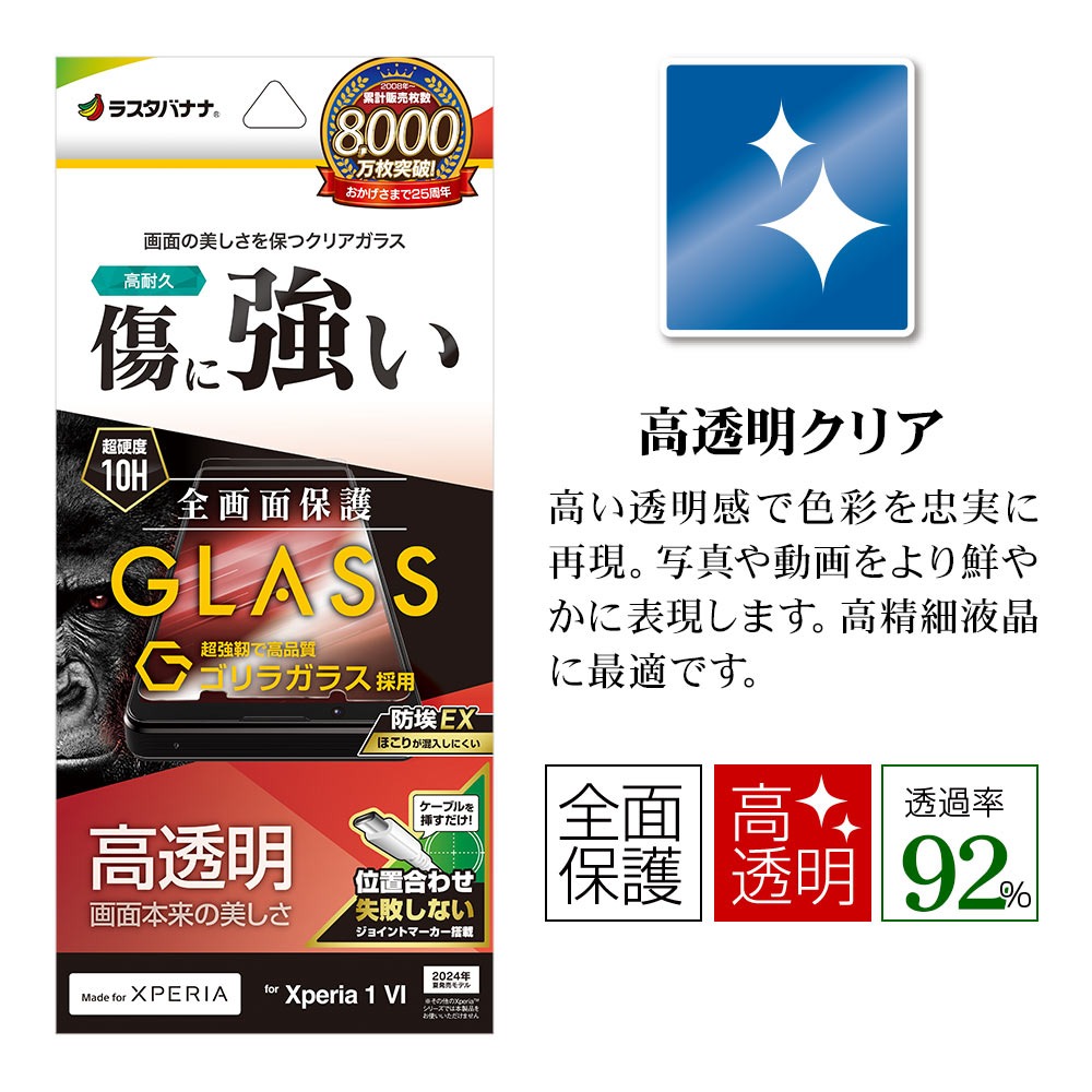 日本銷售冠軍的RASTA BANANA (香蕉牌) 針對 Sony 2024 新旗艦手機 Xperia 1 VI 推出相對應保護貼,其中備受矚目的滿版玻璃保護貼正式發售,除了用戶喜愛濾藍光特性外,因應疫情在保護貼表面加入了抗菌處理,有效減少細菌在表面滋生,玻璃貼莫氏硬度,RASTA BANANA是目前日本最受到歡迎的保護貼之一。