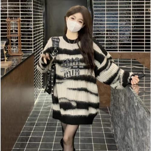 MiuMiu 馬海毛條紋毛衣 斑馬紋元素永不過時啦 簡簡單單的款式最百搭好穿 海馬毛超保暖的 軟糯糯的很舒服 搭配復古顏色牛仔褲 尊的很配呀 條紋毛衣+長靴 冪式絕殺穿搭 慵懶風就很絕 氛圍感超棒!一級遮肉 oversize版型喜歡垮垮的感覺 版型很大 男生穿也很可