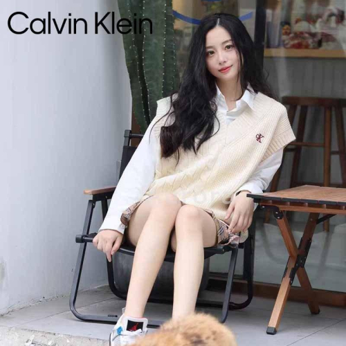 Calvin Klein 刺繡 v領 寬松 甜美 百搭 背心 針織 毛衣
