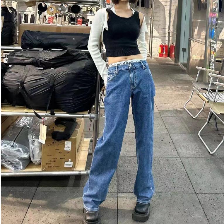 💕 Calvin Klein JENNIE同款 90系列 新款牛仔褲 CK經典腰邊logo 水洗牛仔褲 環保系列,低碳環保,舒適與環保共存。 中藍洗水,帶有重度石洗,未經幹處理,整體復古感十足,彰顯年輕個性風格。 90S直筒版型,寬鬆腰部,寬大舒適的腿部,膝蓋腳裸呈直筒,適合所有身形的女生穿著。
