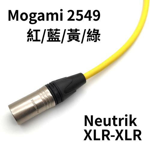 Mogami 2549 導線 + NEUTRIK XLR 公對母 |紅藍黃綠四色|監聽喇叭 / 錄音介面 / 麥克風專用