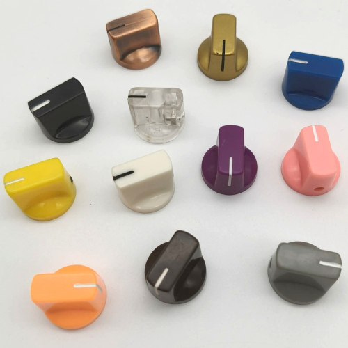 與一般的直插式旋鈕不同,鎖螺絲設計可以適配**圓柄 (Solid Shaft)** 與 **花柄 (Knurled Shaft)** 的電位器。只要對準位置並鎖緊,旋鈕便能穩固不動,即使在激烈的舞台演出中,也能確保參數控制精確無誤。