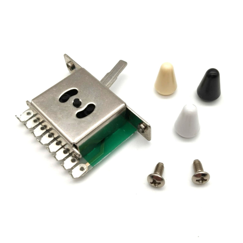 - 【五段開關 (5-Way)】: 常見於 Stratocaster 型號 (SSS, HSS, HSH 配置)。提供經典的五種音色組合,包含迷人的「中間檔位」相位音色。