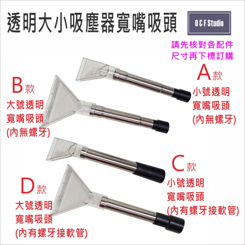 吸塵器配件 透明大小寬嘴吸頭 304不鏽鋼管 工業/家用 沙發、布椅、地毯清潔 蒸氣 吸水 VBC029A-E