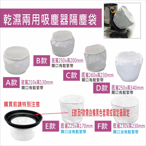 因機種太多沒法一下列舉,避免選擇錯誤,訂購時請先量一下要套濾袋的馬達寬高尺寸.