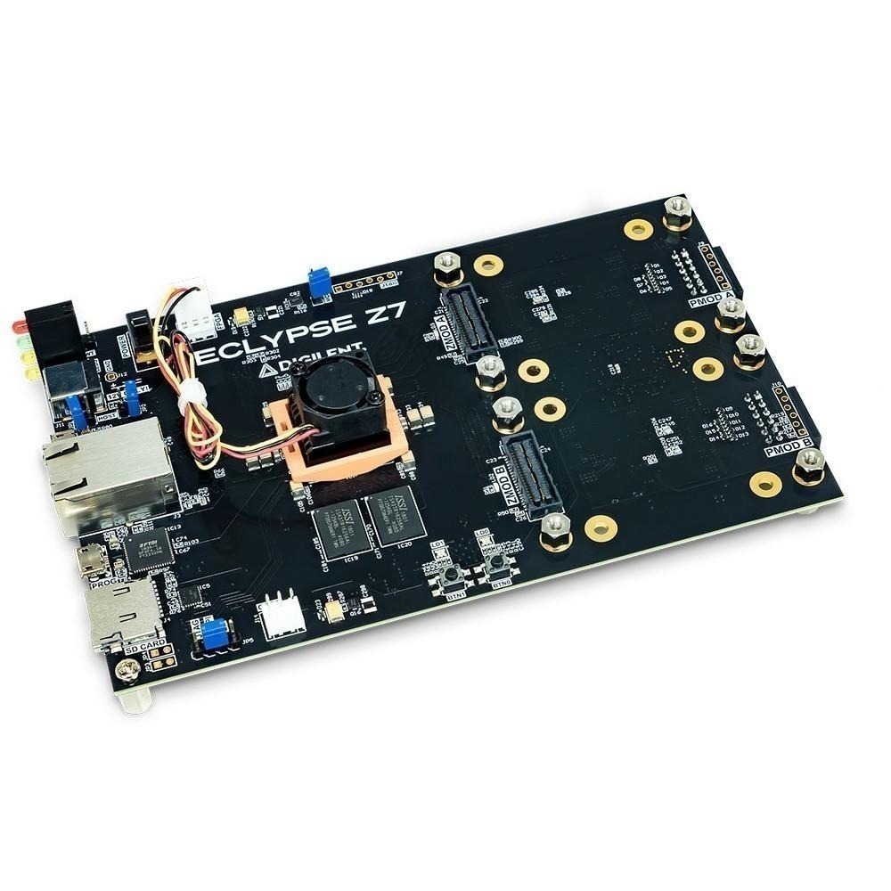 Overview The Eclypse Z7 is specifically designed to enable the rapid prototyping and development of embedded measurement systems. Featuring high-speed Zmod ports for modular expansion and a Xilinx Zynq®-7020 SoC, the Eclypse Z7 is fast and flexible, reducing the time it takes for engineers and researchers to develop innovative and powerful new high-speed instrumentation, control, and measurement systems for edge-computing, medical, and communications applications. Zmod Expansion Zmod is Digilent’s expansion solution using the open-source SYZYGY standard from Opal Kelly. Faster than the Pmod Standard and more compact and cost-effective than FMC, Zmods improve the customizability options for high-speed I/O. Plug in your application specific Zmods and get up and running in hours or days, instead of weeks or months. Take a look at the Features tab for a list of compatible Zmods.