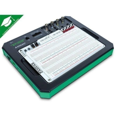 新型態的學習需求 ─ 適用於每個學生的便攜式電路實驗室 新時代激盪新科技,在未來的教育歷程中,因為數位化與科技的發展,過去侷限於固定地點的學習模式已不再是唯一的解決之道。 傳統依賴實驗室授課的方式,也因為便攜型實驗儀器的發展,慢慢有了改變。 隨著時代的變遷,許多機構選擇以行動學習或機動性的工作室學習,作為傳統實驗室的補充,在這樣的需求下,教學上便需要一種可支援所有類型電路項目的便攜式量測工作站。 學生在學習過程中需要透過量測儀器了解自己所進行的功課與專案時,不一定只是得借用學校的實驗室,使用便攜型的的多功能量測儀器,學生可以在圖書館、電算中心、教室甚至咖啡館進行基本的量測。而系所也不再需要為了學生人數或學期短時的研究需求,而購買許多大型量測儀器,甚或為了實驗室的安排傷透腦筋,只需要準備便攜型的 all-in-one 量測儀器設備給學生使用,便可在課堂上完成基本的量測教學。 豐富的產品功能 │ 可滿足基本的量測需求 Analog Discovery Studio (ADS) 是Digilent 於 2019 年全新上市的便攜型量測設備,小巧的機身中隱藏著 13 種實驗室常用的儀器功能,包括示波器,邏輯分析儀,頻譜分析儀,波形發生器等,可隨時更換麵包板,無論是機動性或功能性,都十分適合使用,可滿足大多數學生學習上的需求。產品規格描述如下: 模擬輸入功能 用於示波器、網路分析儀、頻譜分析儀、電壓表、阻抗分析儀和數據記錄儀 兩個模擬輸入通道,可透過 BNC 或 MTE 連接器連接 通道類型:差分(帶MTE)或單端(帶BNC) BNC 接頭的模擬頻寬:3dB 以上 30 + MHz MTE 接頭的模擬頻寬:3 MHz @ 3dB 輸入範圍±25 V(±50 V diff) 輸入保護至±50 V. 14 位元解析度 以 100 MS/s 的速度運行 模擬輸出功能 用於波形發生器和網絡分析儀 2 個任意波形產生器通道,可透過 BNC 或 MTE 連接器連接 交流幅度(最大值):±5 V. 模擬頻寬( BNC或MTE連接器:8 MHz @ 3dB ) 運行速度:100 MS/s 數位輸入/輸出功能 用於邏輯分析儀,碼型生成器,協議分析儀和數位 I/O 頻道:16 輸入邏輯標準:LVCMOS(1.8 / 3.3V,5V容限) 輸出邏輯標準:LVCMOS(3.3V,12mA) 電源 12 伏特電源:12V ± 5%,最大 0.2 安培 -12 伏特電源:-12V ± 5%,最大 0.2 安培 5 伏特電源:5.0V ± 5%,最大 1.0 安培 3.3 伏特電源:3.3V ± 5%,最大1.0安培 V+ 與 V- 電壓:1V至5V(V +),-1V至-5V(V-) 最大功率輸出:每個電源 2.1W 最大電流輸出:每個電源 700mA 輕巧的產品機身 Analog Discovery Studio (後稱 ADS) 外殼尺寸約為 長 23.5 x 寬 19 x 高 3.2 公分,易於攜帶與安裝。 透過麵包板上的 MTE 或 BNC 線的連接,可作為示波器、波形發生器、邏輯分析儀等。 電路設計可以在附帶的磁性連接麵包板上建立,檔案可以輸出便於攜帶回家使用。 麵包板上有電源開關,內建通用I/O和大型麵包板表面。Breadboard Canvas 與 Blank Canvas 提供單獨購買。 若麵包板磨損。 需要USB供電設備,也可使用 Analog Discovery 2 作為Analog Discovery Studio的替代選項。 多樣化的軟體支援 ADS 作為學生的支援,除了硬體的量測功能外,DIGILENT 也開發了免費的量測軟體 WaveForms 供學生使用,可以擷取、分析和產生混合訊號和混合域波形。 WaveForms 下載與安裝均十分簡易,除了可以搭配 ADS 進行量測數據顯示外,在沒有外接硬體的情況下,也可以使用其模式功能進行測試。 ADS 除了可使用 DIGILENT 開發的 WaveForms 軟體進行應用之外,還可使用 WaveForms 的開發工具包 SDK,可在 Python、C++、C# 與 Visual Basic 中建立自定義應用程序的資料庫和應用範例。 MathWorks 與 National Instruments 也針對 ADS 在其產品 MATLAB、LabVIEW 中提供第三方工具箱作為支援,十分適合比較模擬和實際結果。