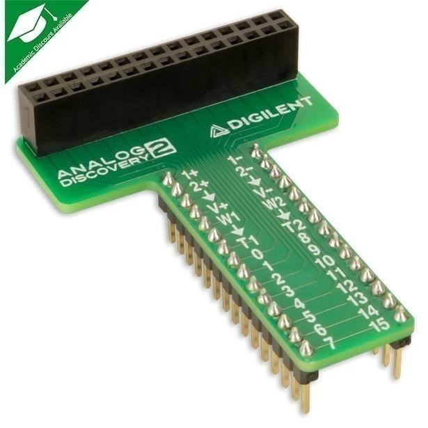 The Breadboard Breakout is designed to be used with the Analog Discovery to provide a secure connection with any breadboard. It provides a female header to pass through all connections from the Analog Discovery as well as a Cmod style breakout with standard breadboard spaced pins. We also offer a bundle option that includes the Ribbon Cable for Analog Discovery, which is a great add-on to the Breadboard Breakout for Analog Discovery to extend the reach of the Analog Discovery connector without needing to plug in individual wires. Note: The Breadboard Breakout for Analog Discovery shares the same physical connector as the OpenScope MZ, but the pin mapping is not the same. Make sure to check the pin diagram of the OpenScope MZ before using the Breadboard Breakout with this device. Features: Provides a direct connection with Digilent's Analog Discovery devices Standard spacing for breadboard breakout pins Labels for breadboard breakout pins corresponding to Analog Discovery header connections What's Included: Breadboard Breakout for Analog Discovery 2x15 Gender Changer Custom anti-static packaging
