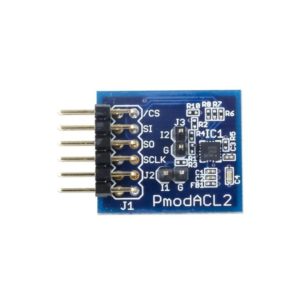 Product Description: The Pmod ACL2 is a 3-axis MEMS accelerometer powered by the Analog Devices ADXL362. By communicating with the chip via the SPI protocol, users may receive up to 12 bits of resolution for each axis of acceleration. Additionally, this module offers freefall detection as well as power saving features through its motion activated sleep and wake modes. Features: 3-axis MEMS accelerometer Up to 12 bits of resolution per axis User-selectable resolution Activity/inactivity monitoring Low current consumption at <2 μA at 100Hz Free-fall detection Small PCB size for flexible designs 1.0 in × 0.8 in (2.5 cm × 2.0 cm) Follows Digilent Pmod Interface Specification Type 2A Library and example code available in resource center What's Included: Pmod ACL2 Custom antistatic Pmod packaging