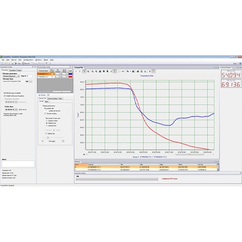 QuickDAQ data logging and FFT analysis software supports data acquisition (DAQ) and display from all Data Translation USB and Ethernet devices that support analog input streaming. Acquire data, record data to disk, plot and display readings, read a recorded data file, and export data to third-party applications.