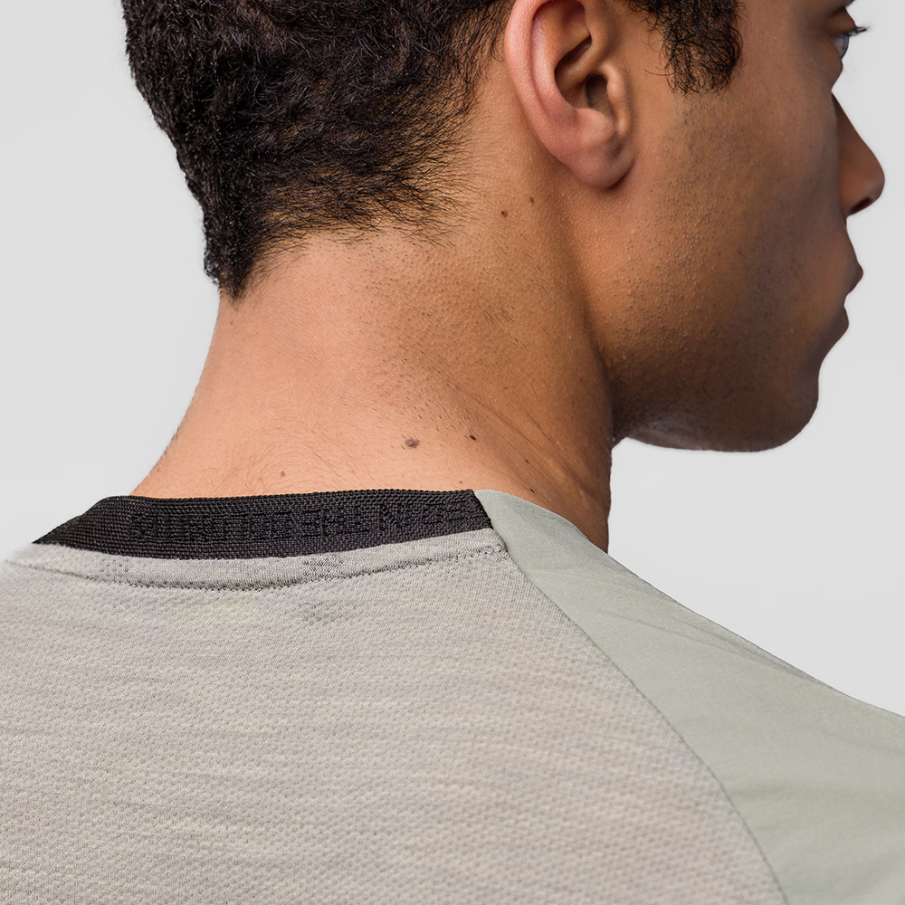 > 腋下採用透氣的Alpine Merino美麗諾羊毛網布,提供額外透氣性和伸展性。