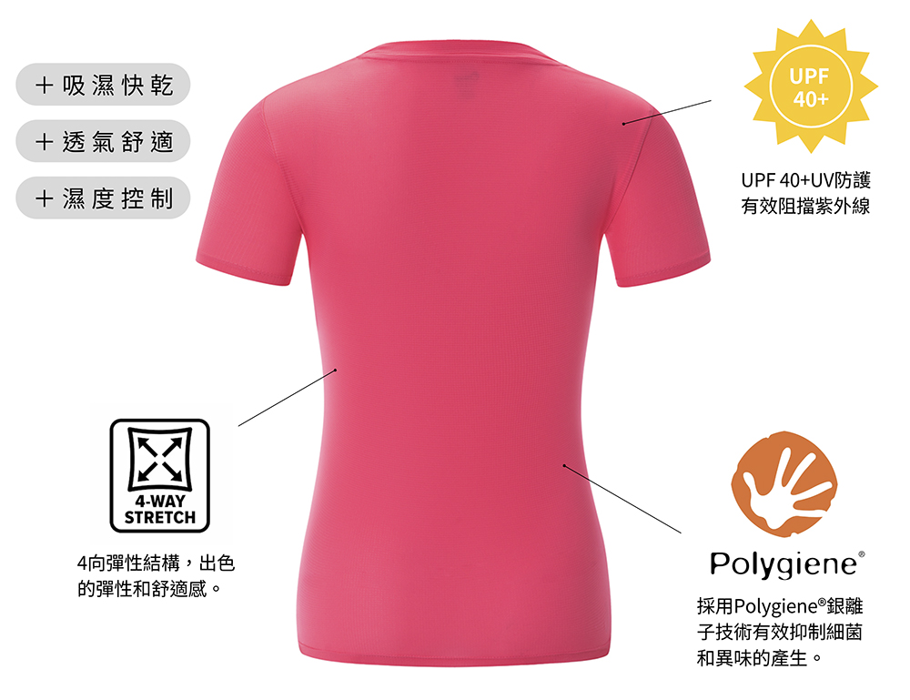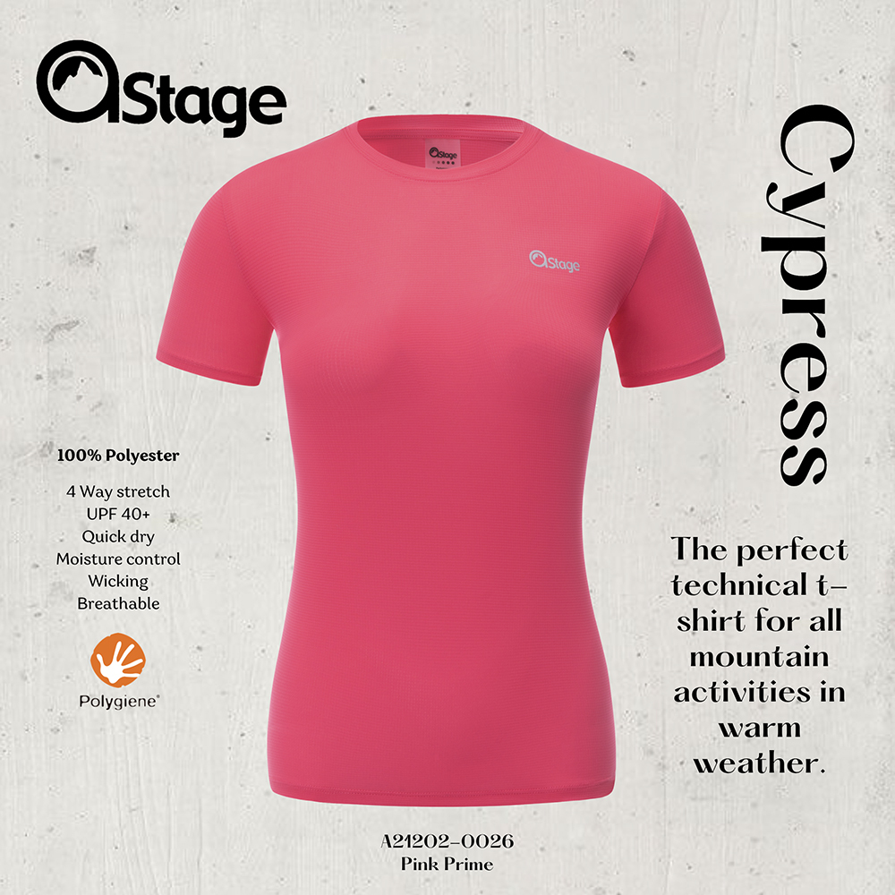 【AStage 加拿大】Cypress T-Shirt 透氣快乾短袖排汗運動上衣 女 青春粉 (A21202-0026)