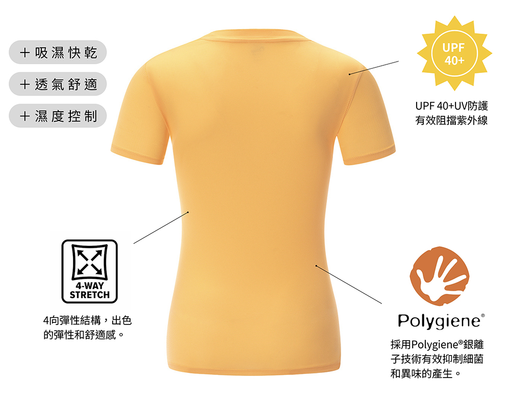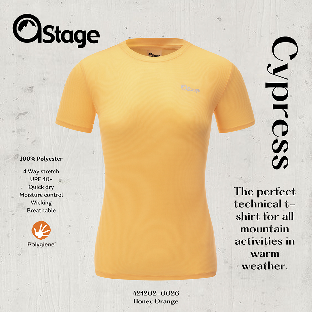 【AStage 加拿大】Cypress T-Shirt 透氣快乾短袖排汗運動上衣 女 蜂蜜橘 (A21202-0026)